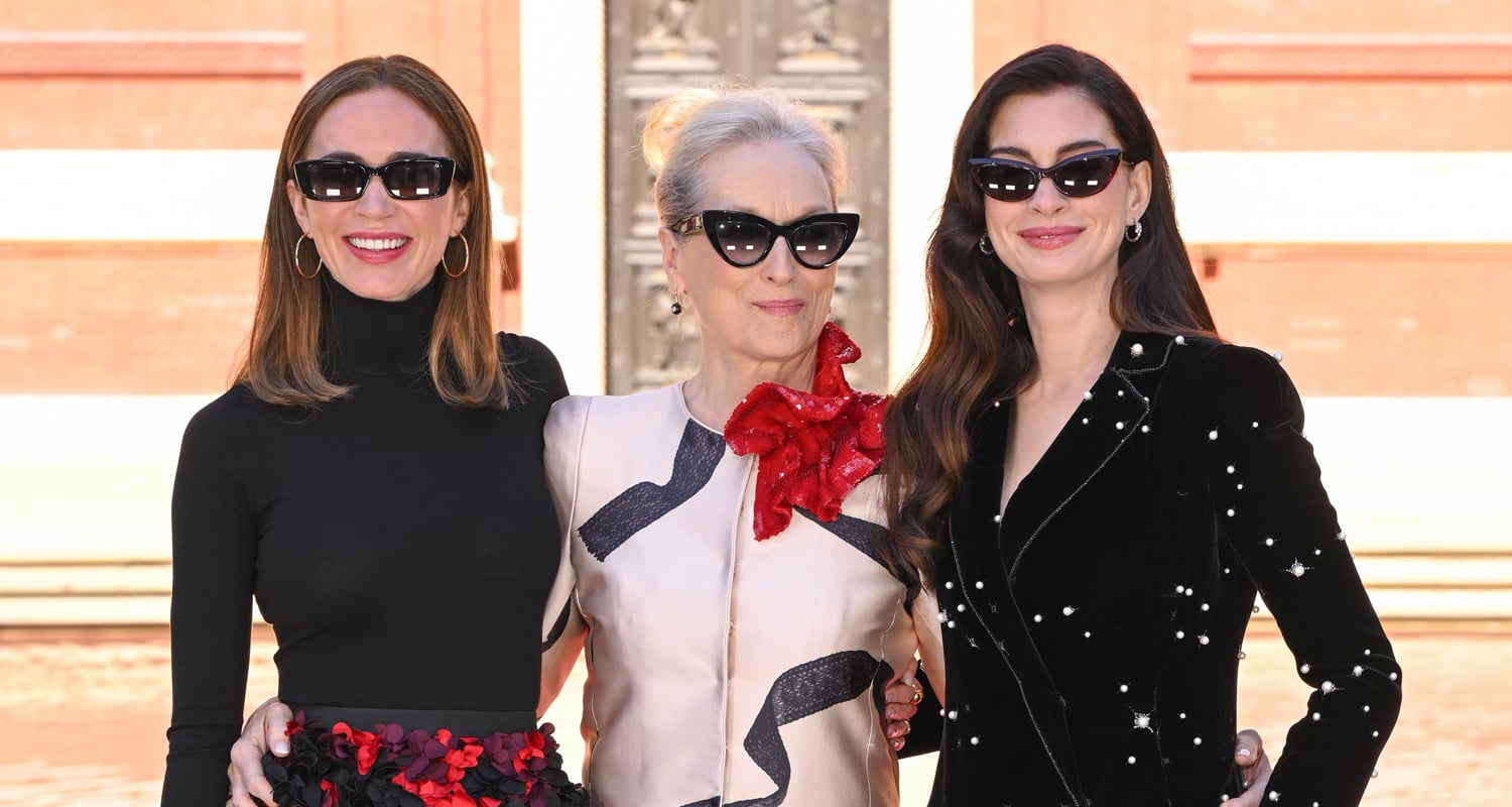 FYI: Anne is wearing Armani Privé. Emily is wearing Michael Kors. Meryl is wearing Armani Privé.